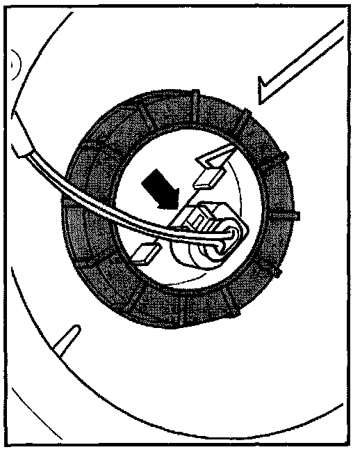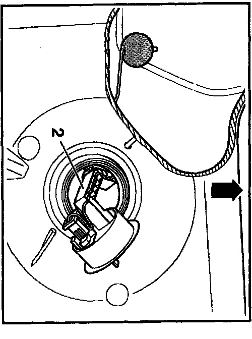 Arrow in illustration references front of vehicle.