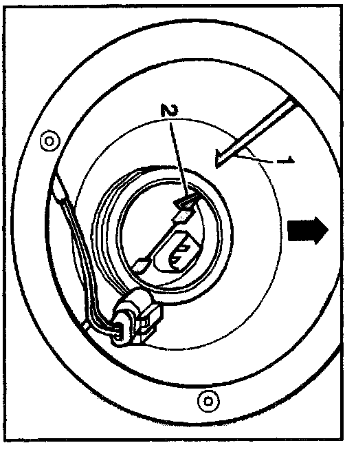 ^ Prior to installing the nut, make certain the fuel level sending unit is in the correct position; the arrow -2- on the sender MUST be aligned with the arrow -1- on the fuel tank.