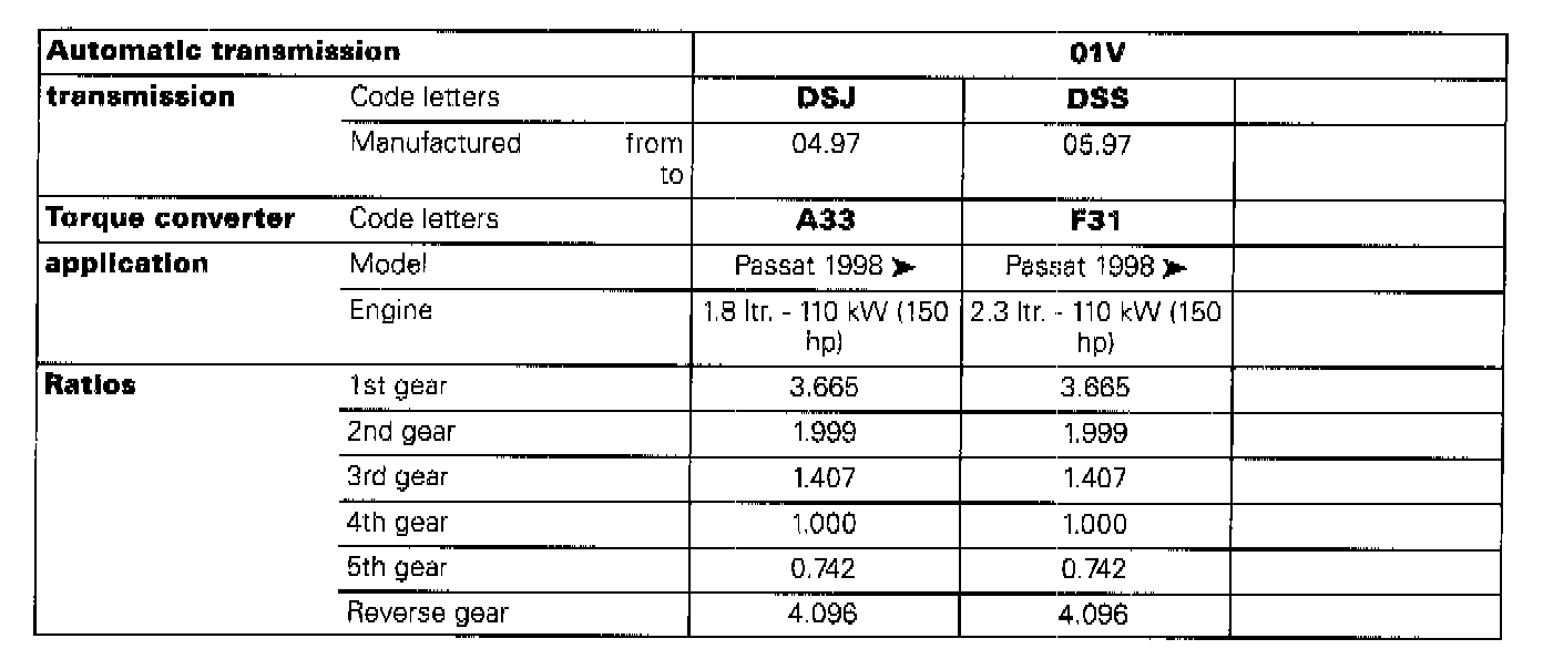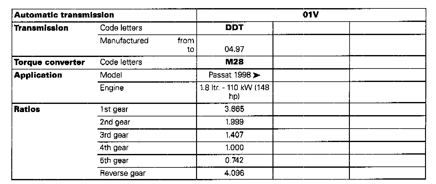 The "5-speed automatic transmission 01V" is installed in the Passat 1998 ->.
