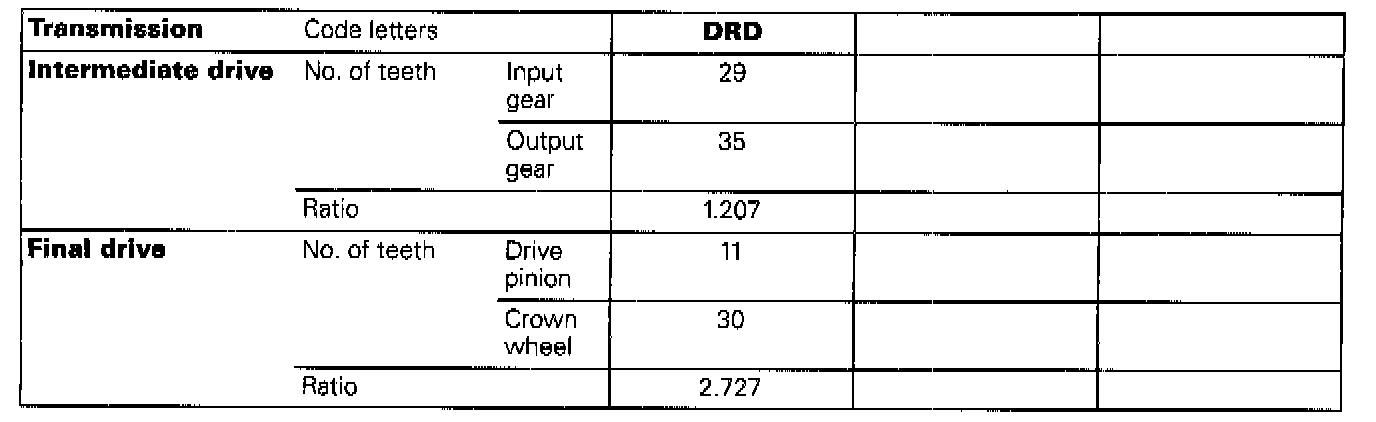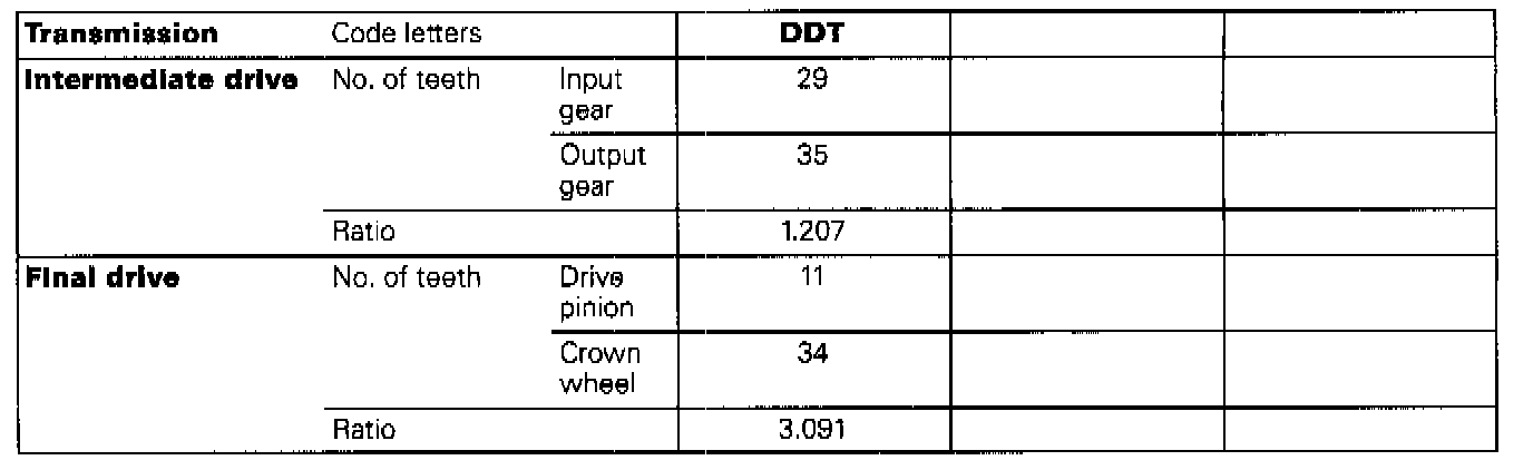 CODE LETTERS, TRANSMISSION APPLICATION, RATIOS, EQUIPMENT