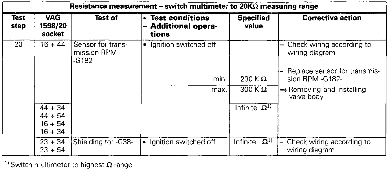 Electrical Test Tables (Pinout Charts)