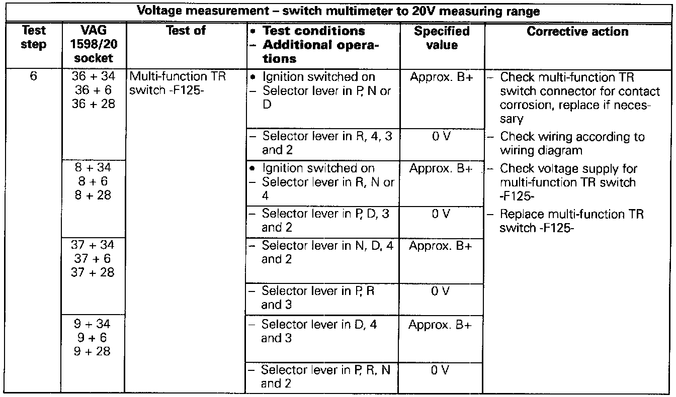 Electrical Test Tables (Pinout Charts)
