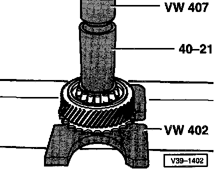 - Place press tool 40-503 with shoulder in threaded hole of input gear.