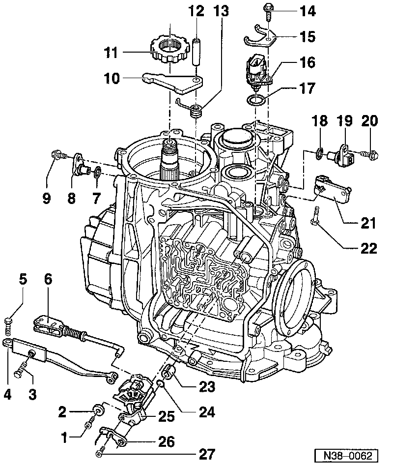 ^ Multi-function Transmission Range (TR) switch-F125-, Transmission Vehicle Speed Sensor (VSS) -G38- and Vehicle Speed Sensor (VSS) -G68- can be tested in the vehicle with On-Board Diagnosis (OBD).