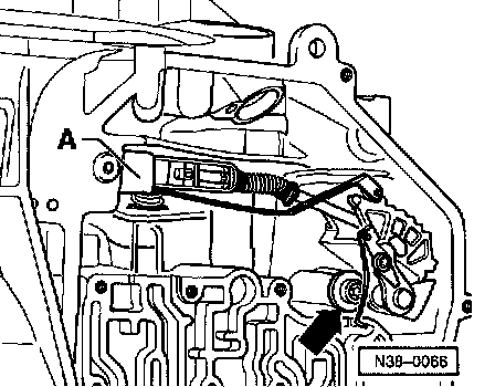 ^ Selector shaft can be removed or installed after removing detent spring -A-.