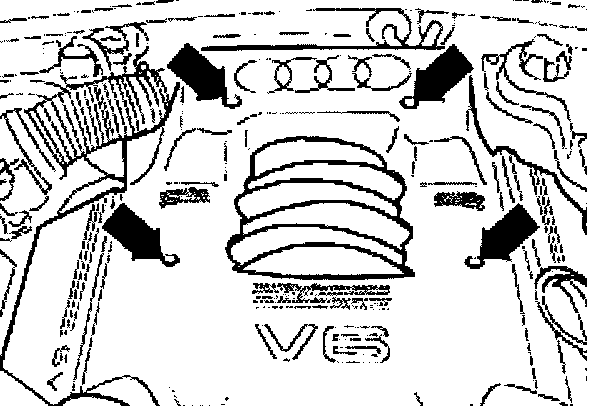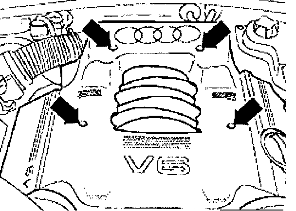 - Unscrew bolts -arrows- and remove engine cover.