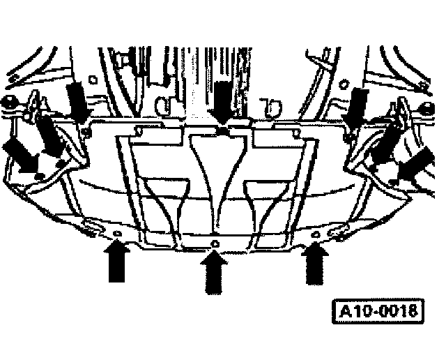 - Remove protective plates for left and right hand drive axles -arrows-. The third bolt cannot be seen in the illustration.