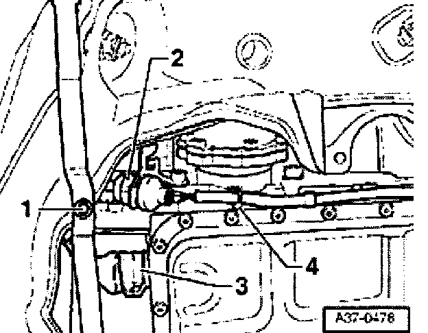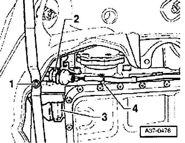 - Shift selector shaft lever into position "2" and carefully press ball head of selector lever cable -1- into selector shaft lever -2- e.G. using a pair of pliers.