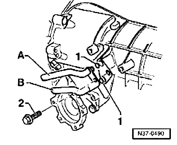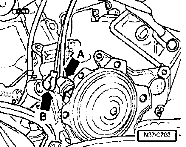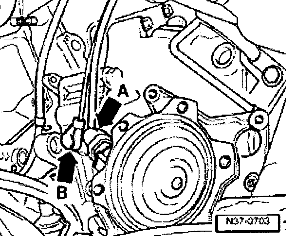- Unscrew engine speed sender -G28 (arrow-B-) from transmission.