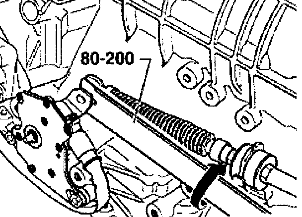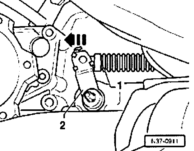 - Push selector lever cable -1- forward fully -arrow- to shift selector lever shaft -2- into position "2".