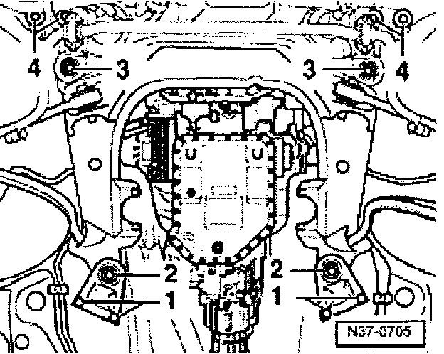 - Remove left and right-hand engine mounting nuts-1-.