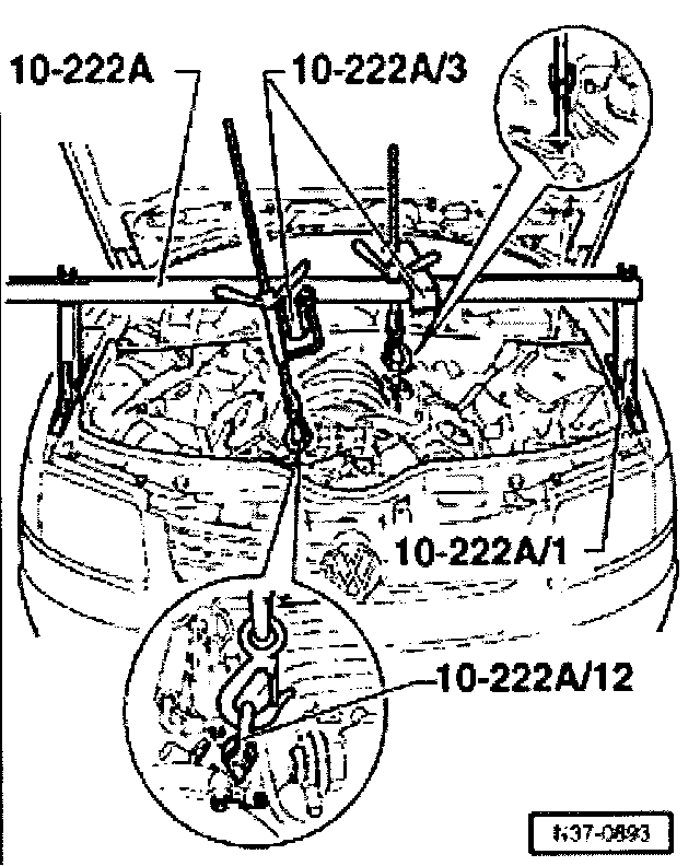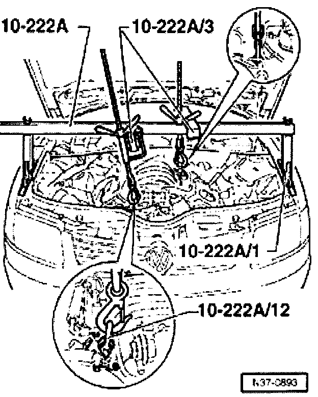 - At the same time, raise engine and transmission assembly on jack VAG 1383A (with aid of 2nd mechanic).