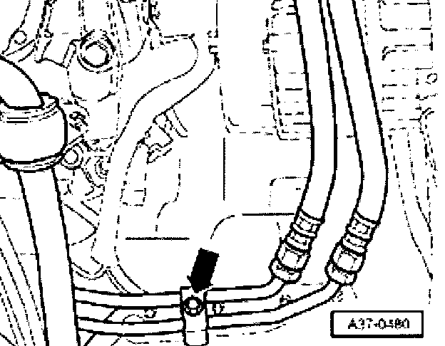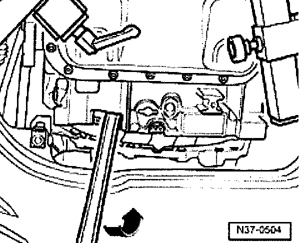 - Remove ATF line holder -arrow- from engine oil pan.