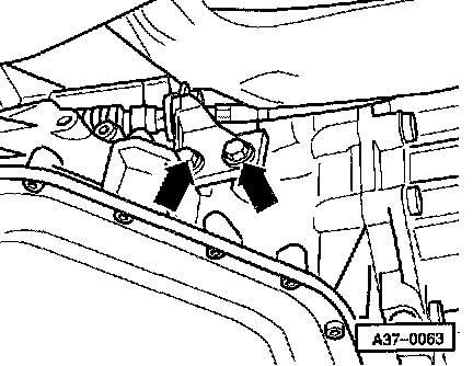 - Loosen bolts (arrows) securing support bracket to transmission.