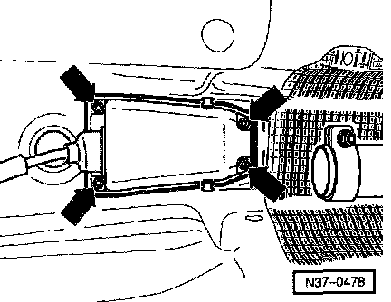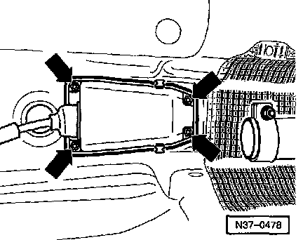 - Unbolt front heat shield from bottom of mounting bracket and slide toward the rear.
