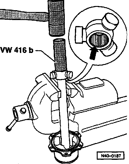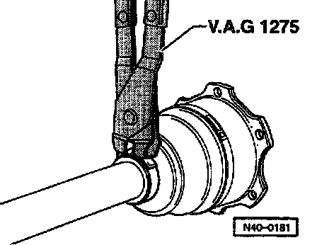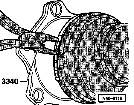^ Secure the triple-rotor joint with tape so that the housing is not inadvertently pushed back when installing the drive axle.