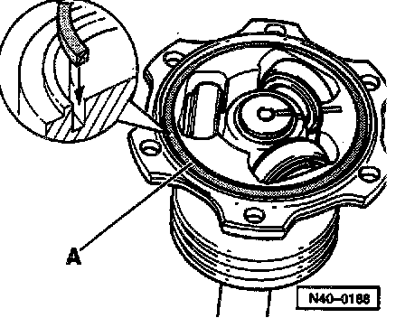 - Install rectangular sealing ring (arrow) from repair kit into groove.