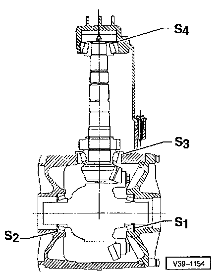 ^ Divide total shim thickness "S_total" into S1 and S2 to achieve the specified backlash between the ring gear and the pinion.