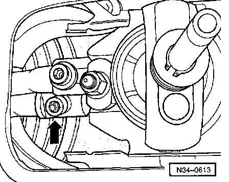 - Loosen selector rod bolt (arrow).