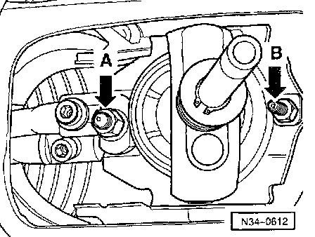 - Loosen ball housing nuts (arrow -A- and arrow -B-).