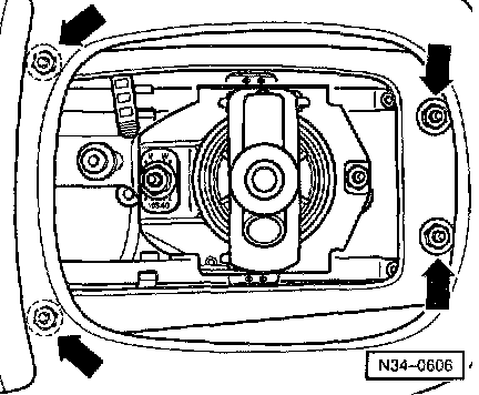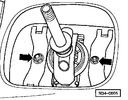 - Remove nuts (arrows) securing gear lever housing.