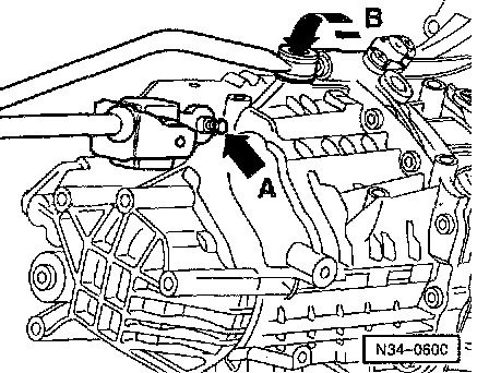 - Remove selector rod (arrow -A-).