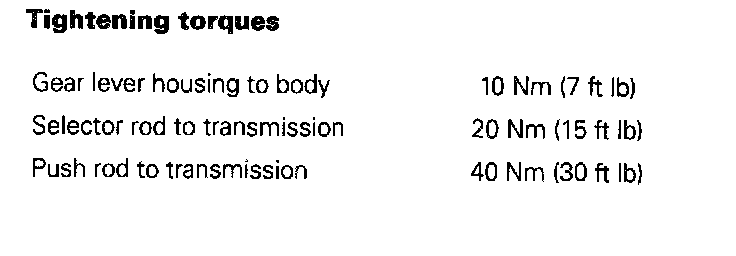 Gear lever housing to body 10 Nm (7 ft. lbs.)