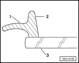 A new, un-pre-coated side window has been introduced for Passat sedan and wagon. On new side windows, only PUR-sealing lip - 1 - and spacer - 2 - has still been sprayed.