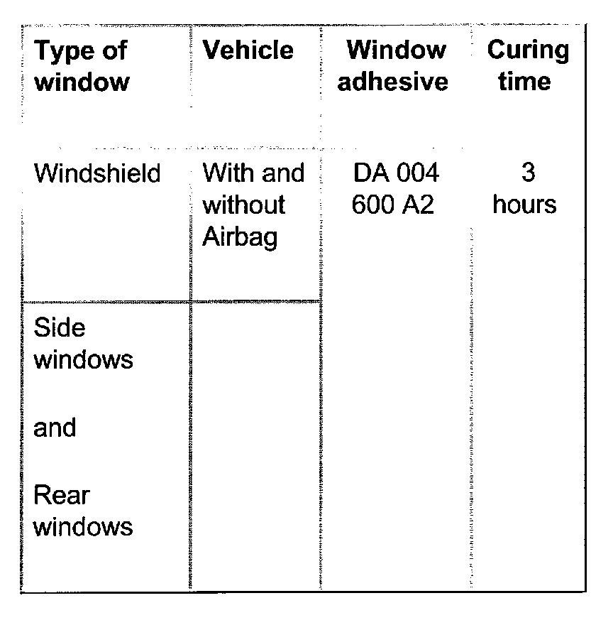 Curing time means: from bonding window into taking vehicle into use. During the curing time the vehicle must stand on a level surface at room temperature (at least 15 °C).