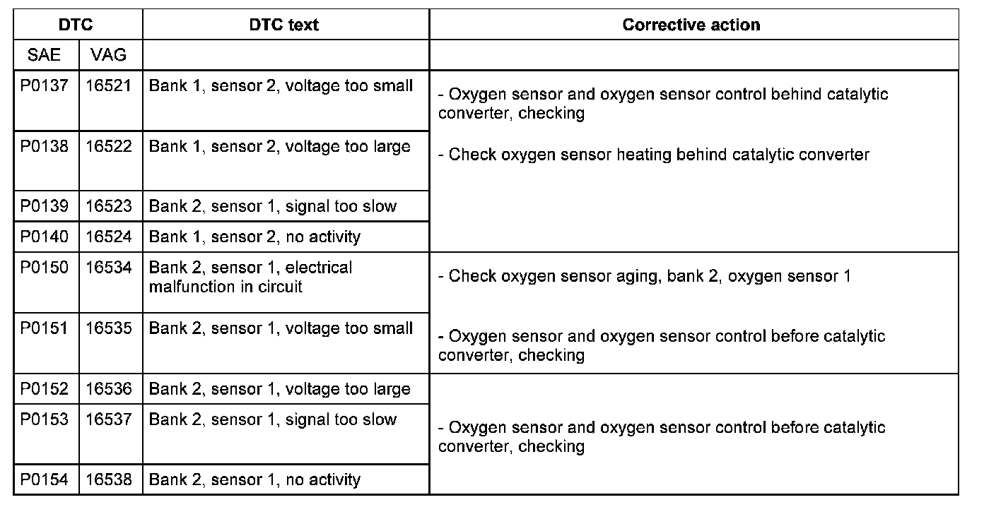DTC P0137 - P0154: