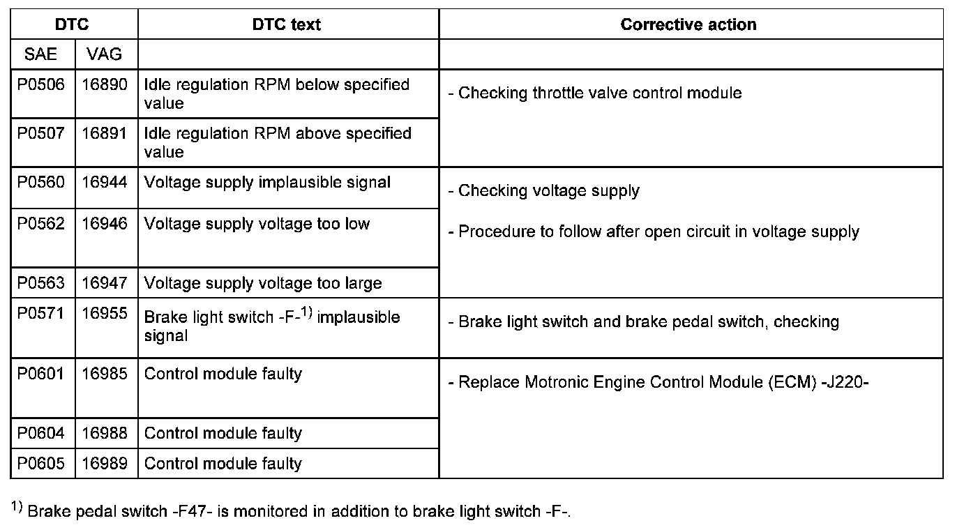 DTC P0506 - P0605: