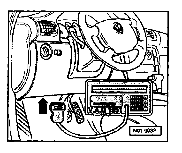 - Connect VAG 1551 Scan Tool with cable VAG 1551/3.