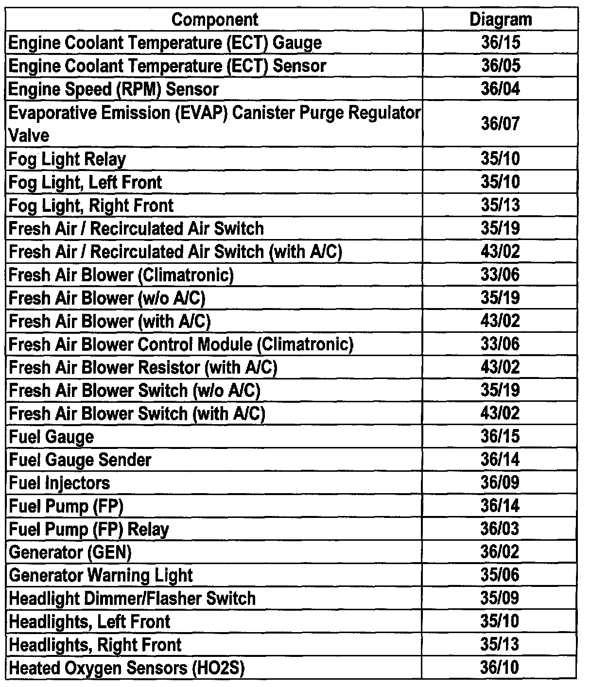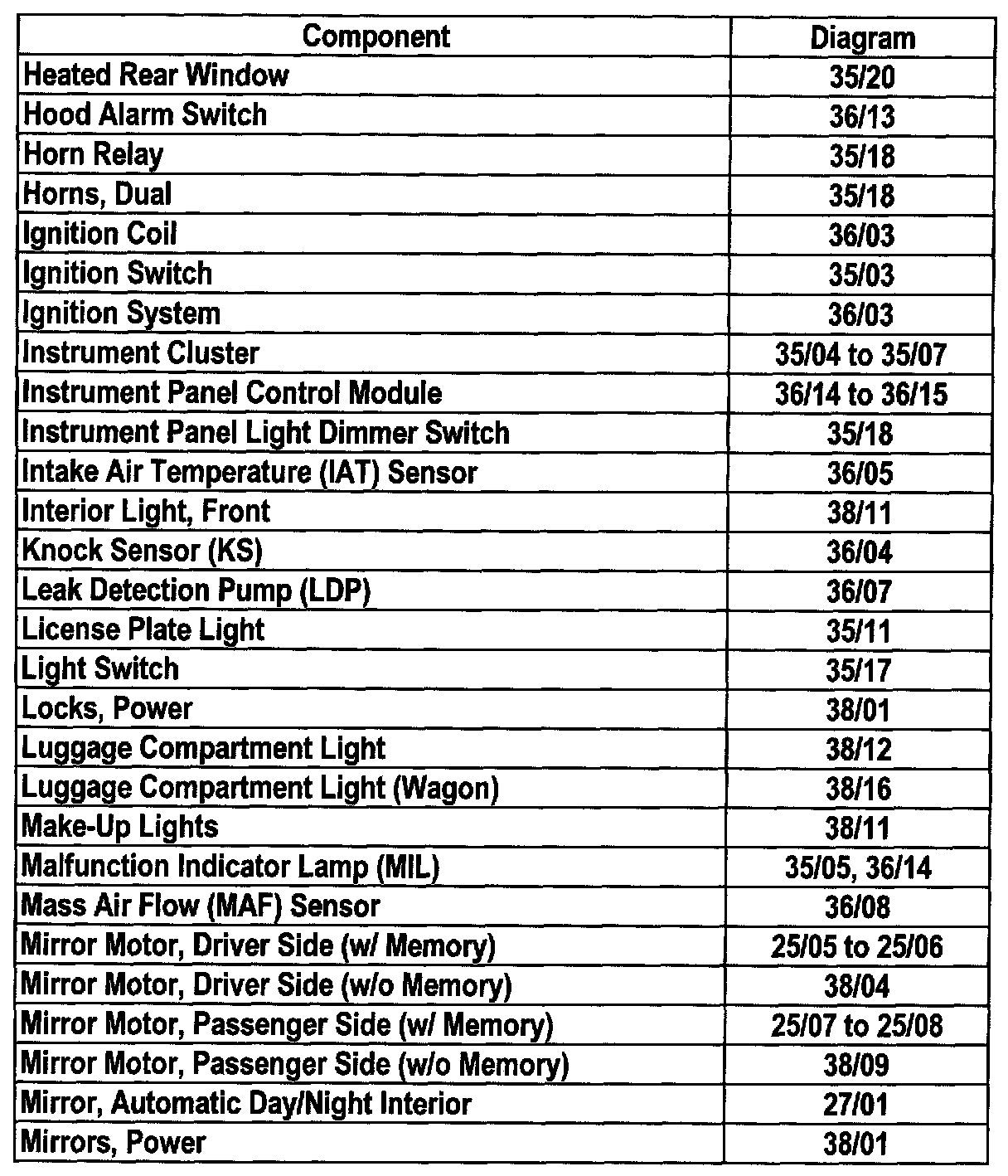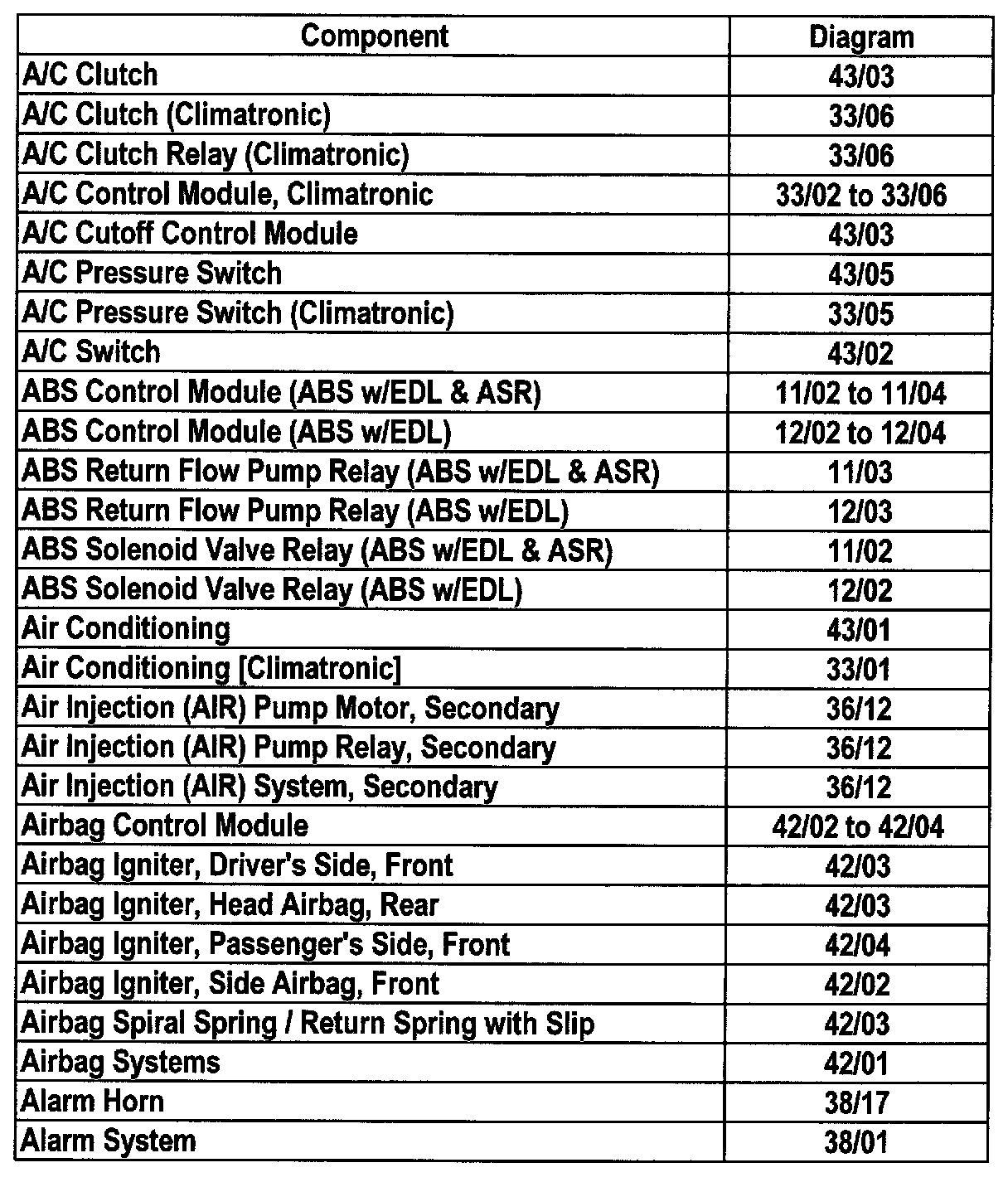 Master Diagram Index