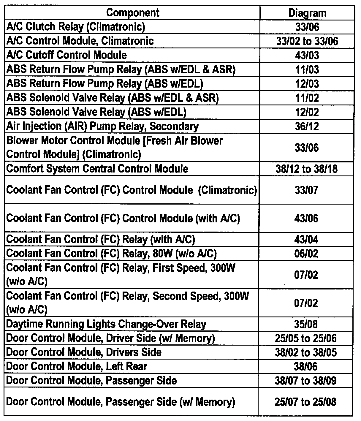 Master Diagram Index