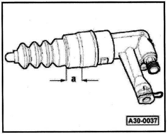 - Before installing slave cylinder in transmission housing, you must coat the area -a- of the boot with Lithium grease G 052 150 A2
