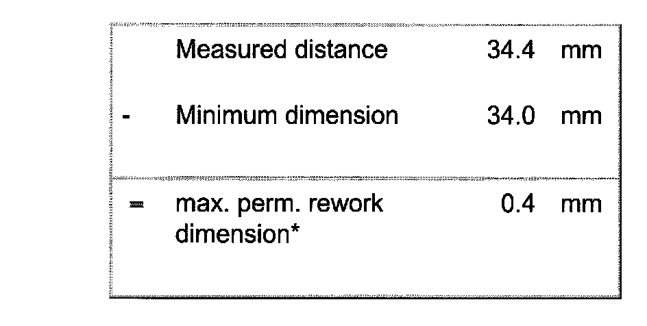 - Calculate max. permissible reworking dimension from measured distance and minimum dimension.