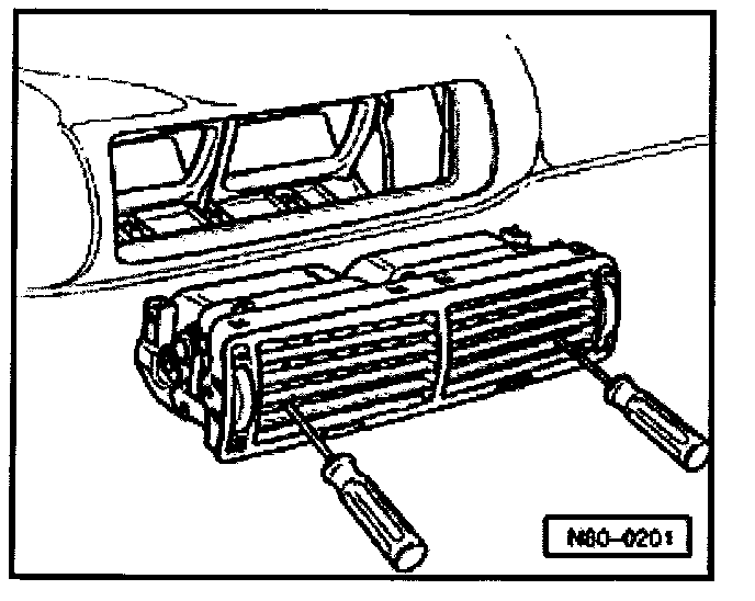 - Center and side air outlets, removing (early prod.) See Fig.4