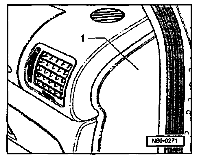 - Center air outlet, removing (later prod.) removing See Fig. 5