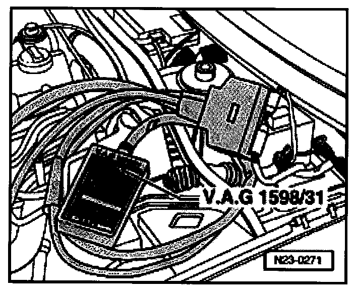 - Connect VAG 1598/31 test box to control module wiring harness. Engine Control Module (ECM) is not connected.