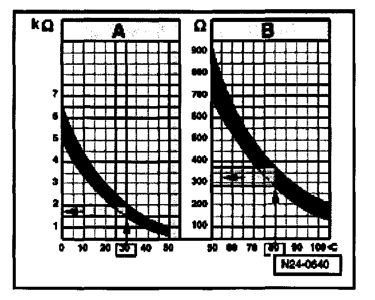 - 30 °C is in range A and corresponds to a resistance of 1.5-2.0 Kohms