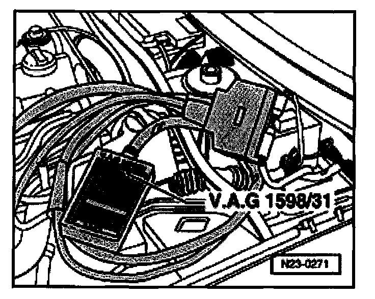 - Connect VAG 1598/31 test box to control module wiring harness. Engine Control Module (ECM) is not connected.