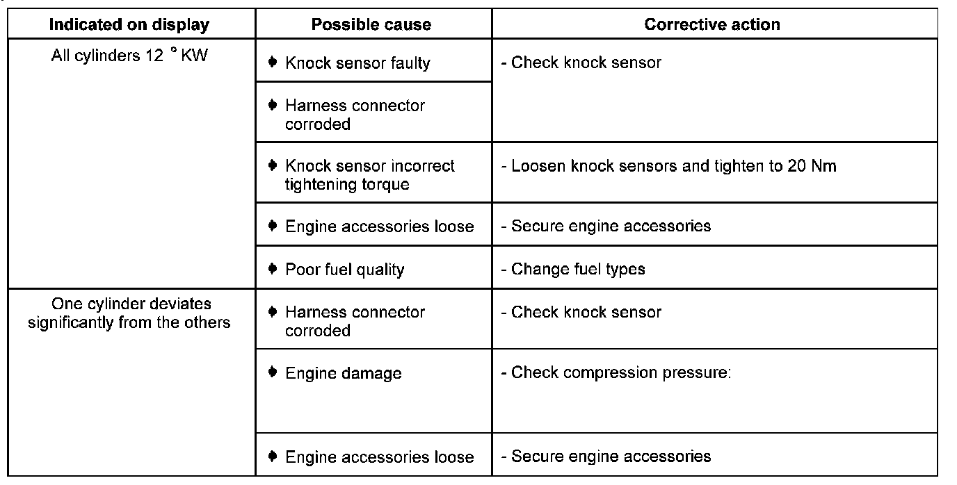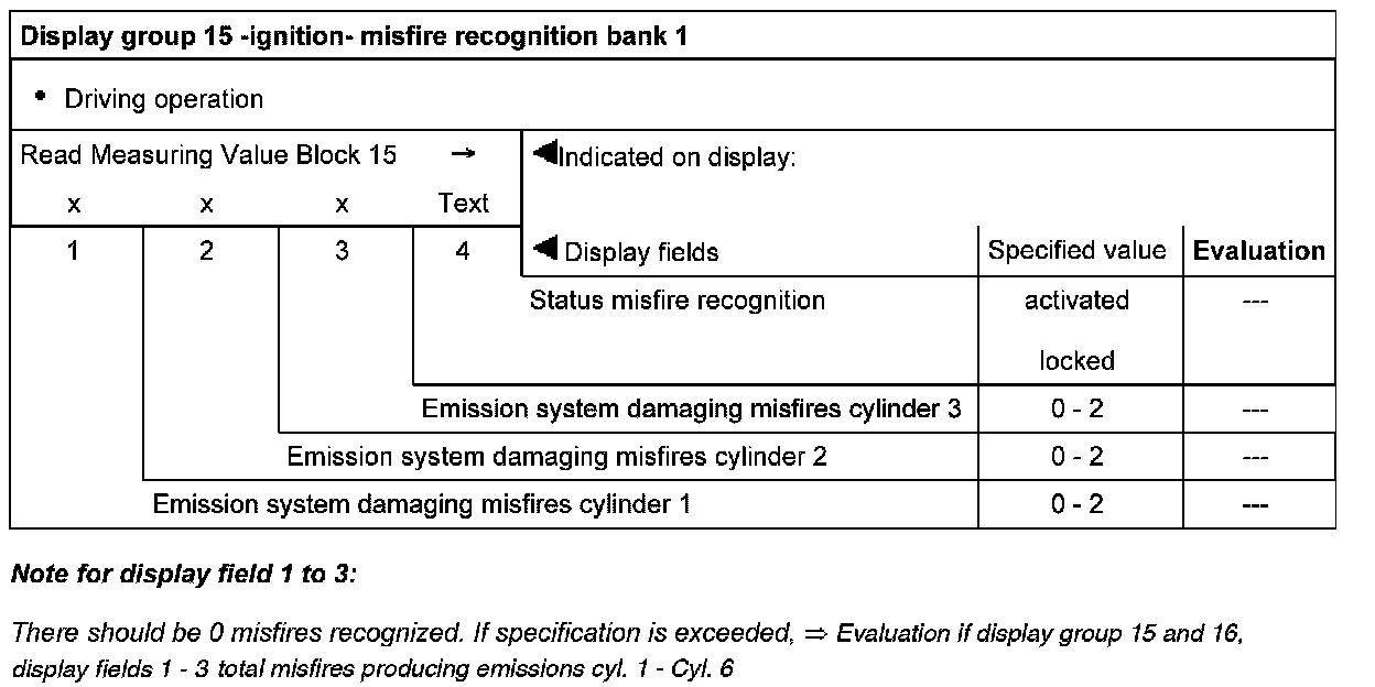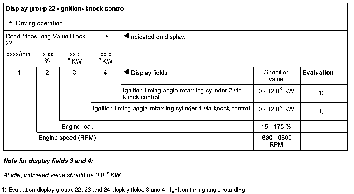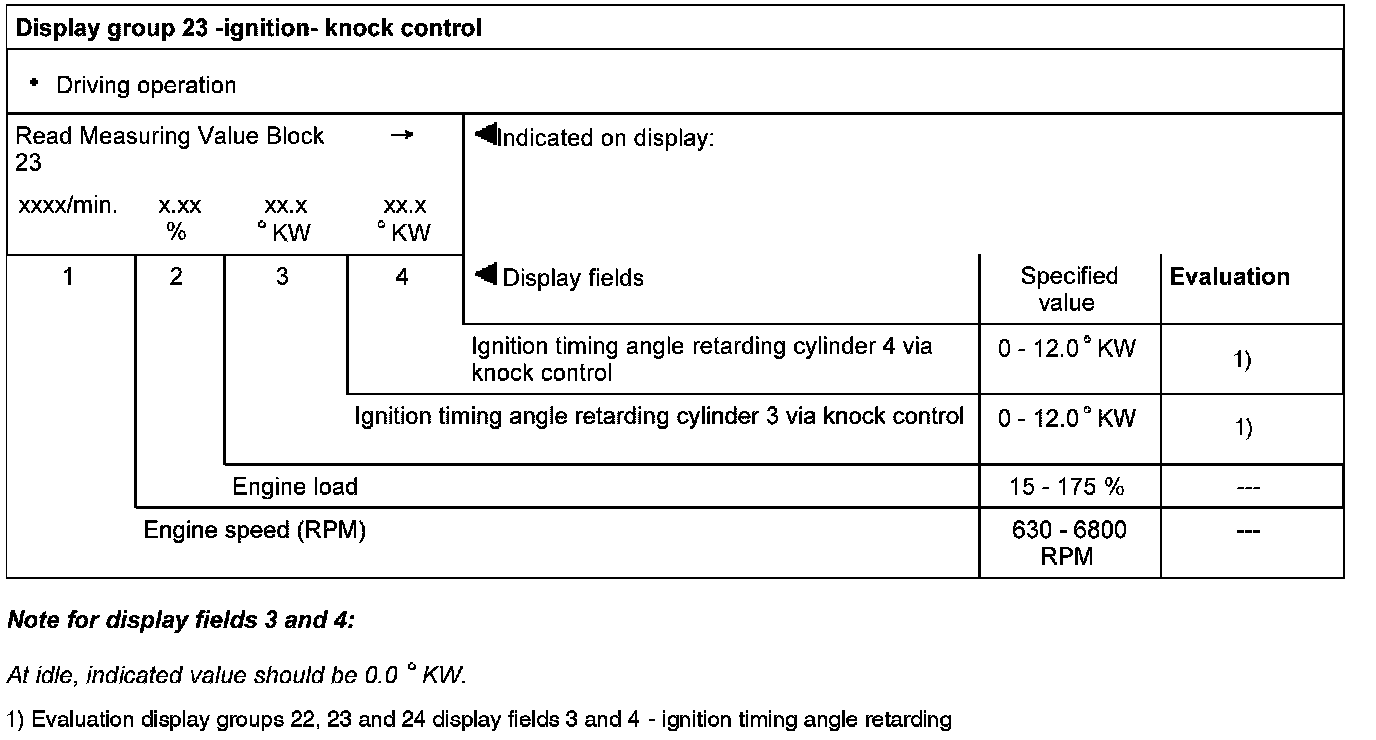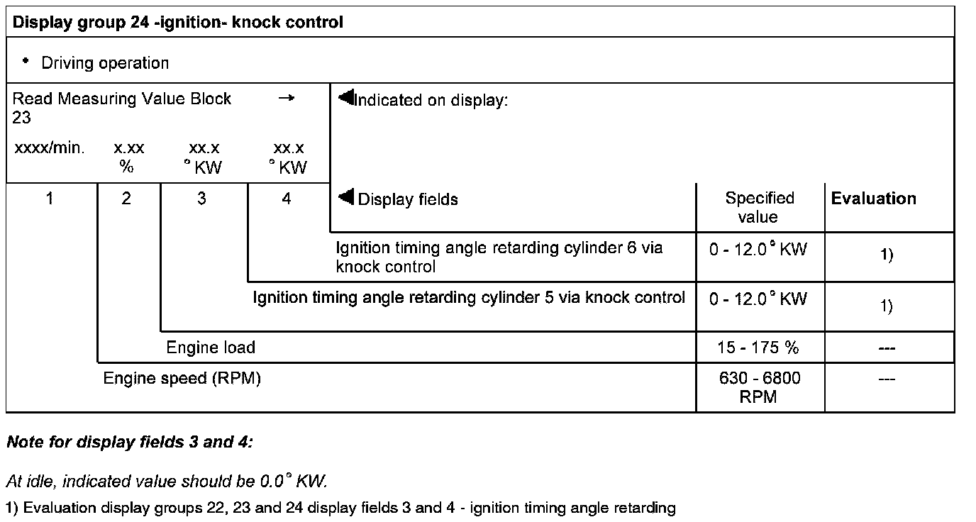 Evaluation display groups 22, 23 and 24 display fields 3 and 4 - ignition timing angle retarding