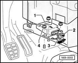 - Swing bracket - 2 - in opposite direction of arrow and pull out harness connector - 3 - from control module - 1.