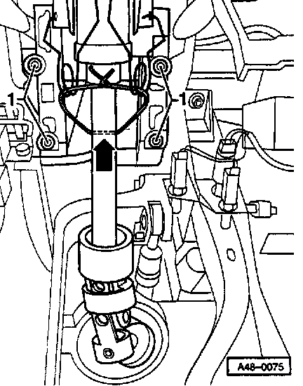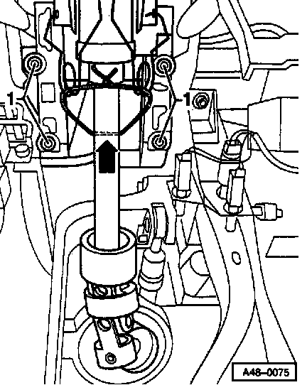 - Remove nut -1- on steering universal joint.