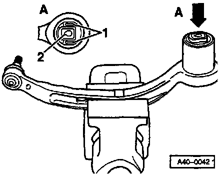 ^ The arrows on the bushing -1- or groove -2- points toward the joint pin.