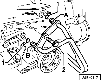 - Connect hose to ATF line -A- and secure with hose clamp. Hang other end of hose in suitable container.