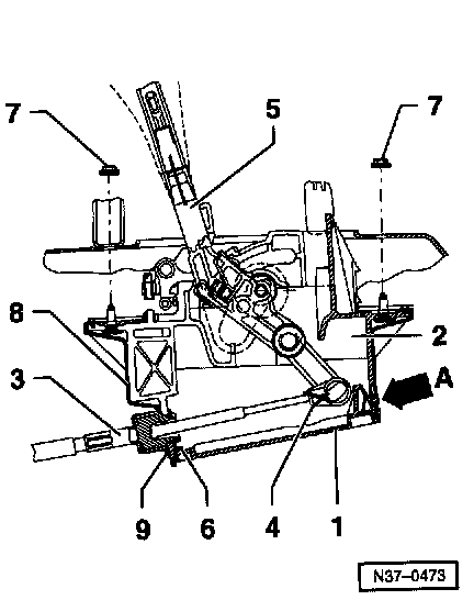 - Pull selector lever cable off selector lever -5-.