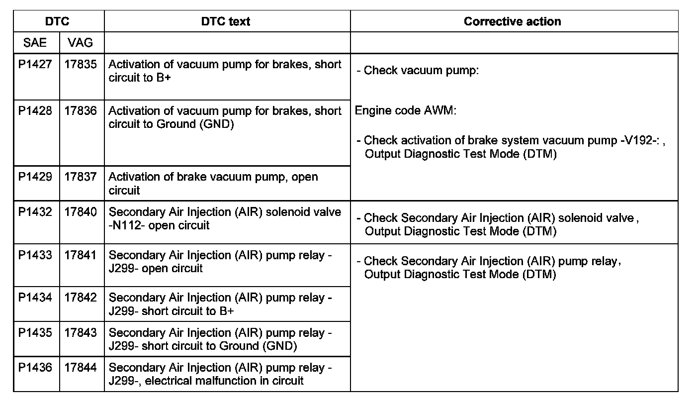 DTC P1427 - P1436: