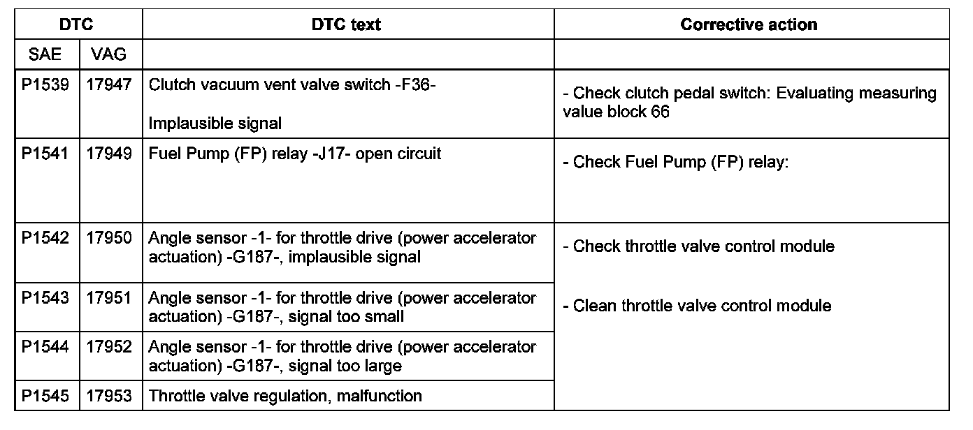 DTC P1539 - P1545: