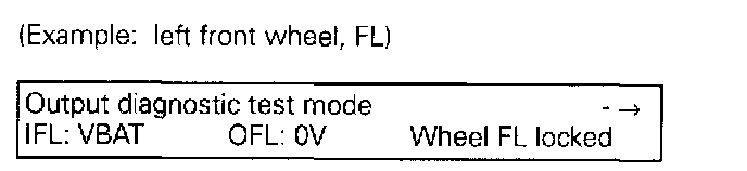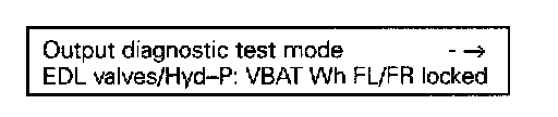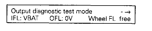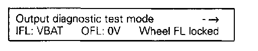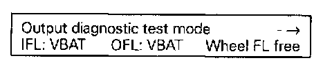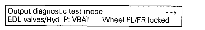 The output diagnostic test mode is a part of the ABS electrical test. The ABS pump motor and the correct functioning of the hydraulic circuits (assignment of brake lines to wheel brake calipers; valve functions) can be checked for leaks or incorrect connections using the output diagnostic test mode.